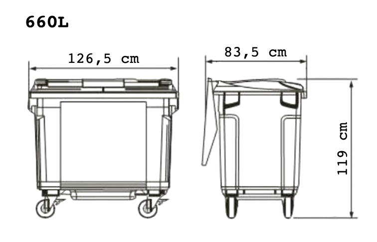 Vårt största kärl, storlek Large, har oändliga möjligheter för dig som kund. Bygg upp en sorteringsstation som möjliggör att du kan forsla bort stora mängder avfall på ett enkelt och dammfritt sätt. Kärlet har också fyra hjul vilket underlättar transport då du fyllt det. Detta kärl rymmer 660 liter och går in i dom flesta hissar.